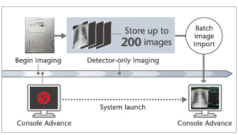 O detector em si pode armazenar até 200 imagens na memória interna. Isso elimina o trabalho de transportar vários cassetes CR como nos sistemas convencionais. Além disso, permite realizar imagens rápidas, como à noite ou durante uma emergência.